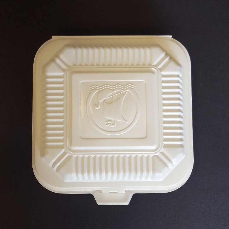 These clamshells are made from bioplastic. It can be used for hot or cold items – Perfect for on a go or take out. Bioplastic clamshells are plant based plastics made from renewable biomass materials and are stronger than Styrofoam.
